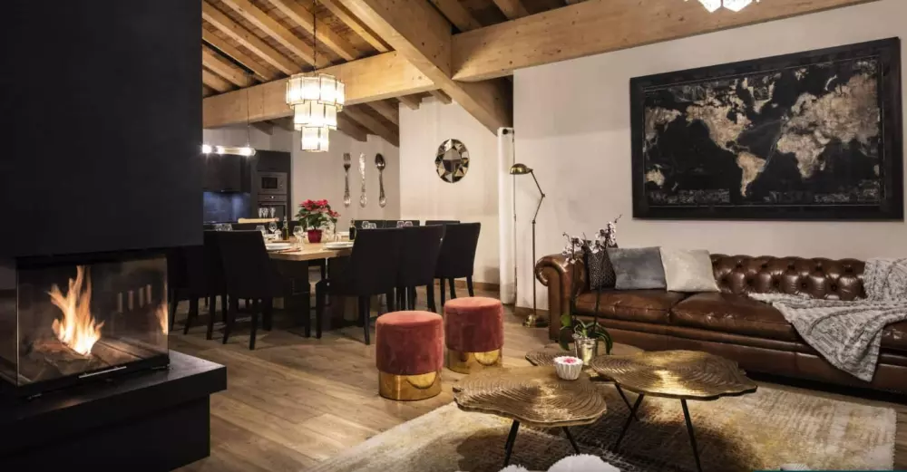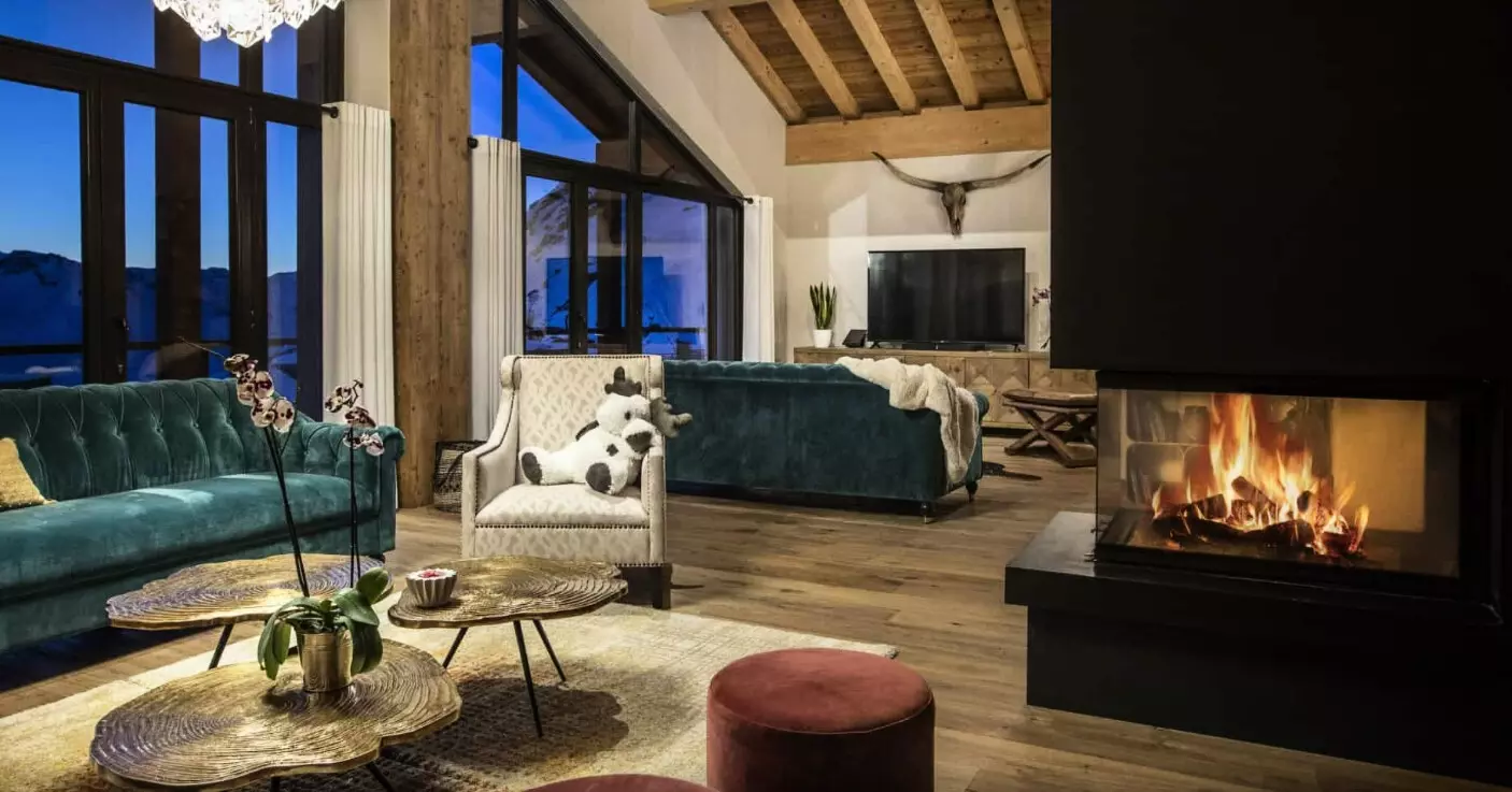 Pensé comme une extension de la nature environnante, le Chalet Golden Jubilee et ses trois étages plein sud se déploient au grès de vues panoramiques sur le domaine des 3 Vallées, et s'y reflètent par un jeu de matières nobles et de couleurs chatoyantes pour une ambiance apaisante et raffinée. Ici, la lumière s'invite dans chaque recoin, et la chaleur d'une sieste sur l'un des balcons ensoleillés se prolonge le soir au coin d'un feu crépitant et parfumé.