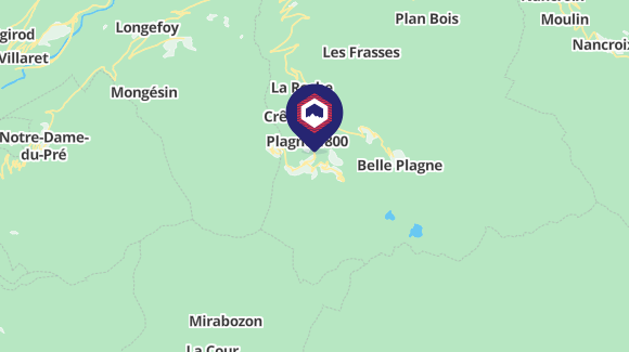 Autoroute jusqu'à Albertville (A43 et A430) - Route 4 voies d`Albertville à Moûtiers. Suivre la N90, puis accès Macot la Plagne. Après le village de Macot, monter 16 km. Au croisement, situé à 200 mètres au-dessus de l'embranchement Plagne Lauze, prendre à gauche direction Plagne Bellecôte-Belle Plagne.