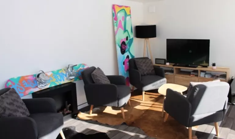Les logements sont conçus tout confort avec une chambre cosy avec un lit douillet, un espace de vie lumineux, une salle de bain moderne. Le petit déjeuner est servi dans l'espace de vie commun avec vue sur la montagne, TV et l'espace Wifi.