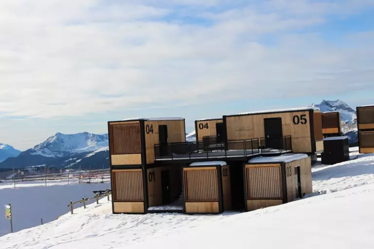 Le Flying Nest, c'est un hébergement mobile et insolite designé par Ora-Ïto construit à partir de containers entièrement aménagés, au pied des pistes, situé à 5-10 min à pied des commerces du quartier Falaise, dans un environnement calme. Il vous permettra de bénéficier d'une expérience insolite en plein cœur de la nature avec une vue exceptionnelle.