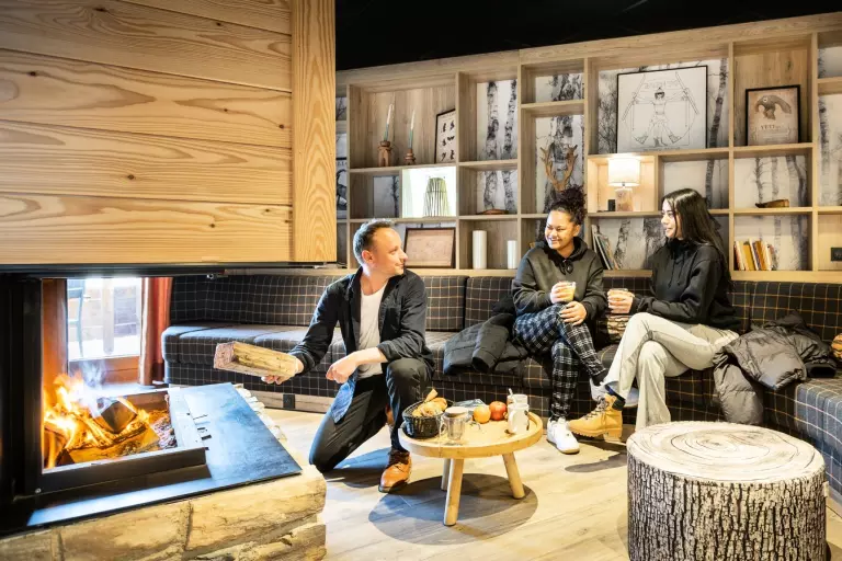 - Salon de réception (canapés, fauteuils et cheminée centrale)