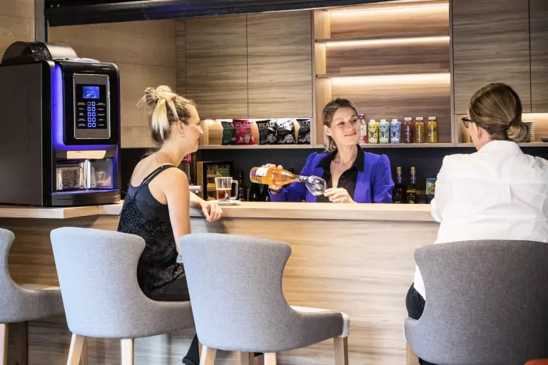 La Résidence vous accueille dans une ambiance chaleureuse dès votre arrivée, grâce à son agréable salon cosy et sa cheminée. Après une journée bien remplie, retrouvez-vous au bar pour un verre entre amis ou voisins !