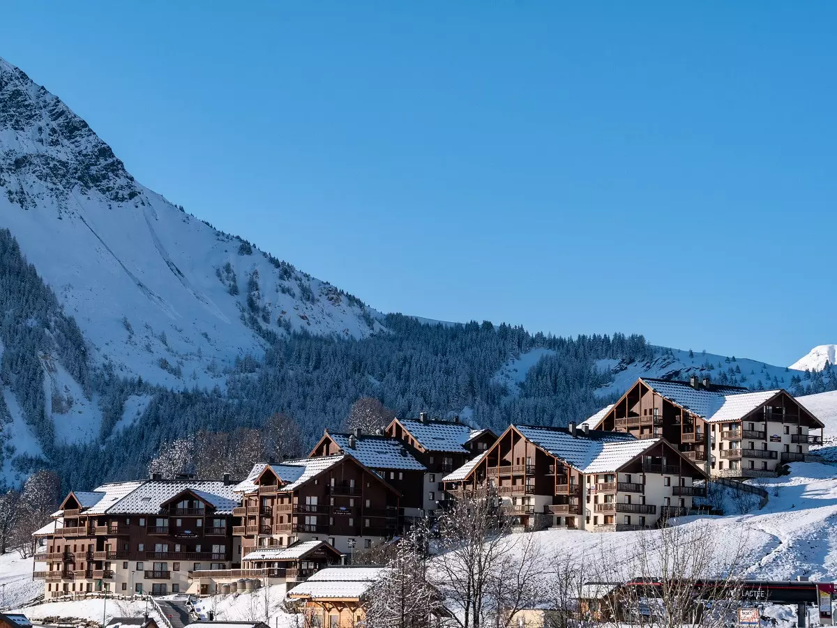 Située à 50 mètres du télésiège de la Voie Lactée, à 300 mètres des commerces et du centre de la station, la Résidence Goélia Les Alpages du Corbier*** se répartit en 3 chalets à l'architecture montagnarde.