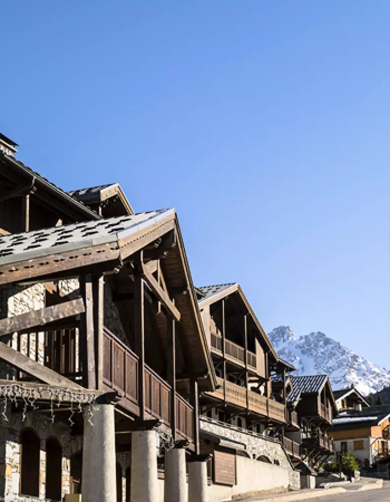 La Résidence se compose d'un ensemble de 6 gros chalets, chacun regroupant 4 à 6 appartements, sur un ou plusieurs niveaux au départ des chemins de randonnée, de l'accès à la piscine (à 10min à pied par la fôret) et à deux pas du centre de Courchevelle 1650.