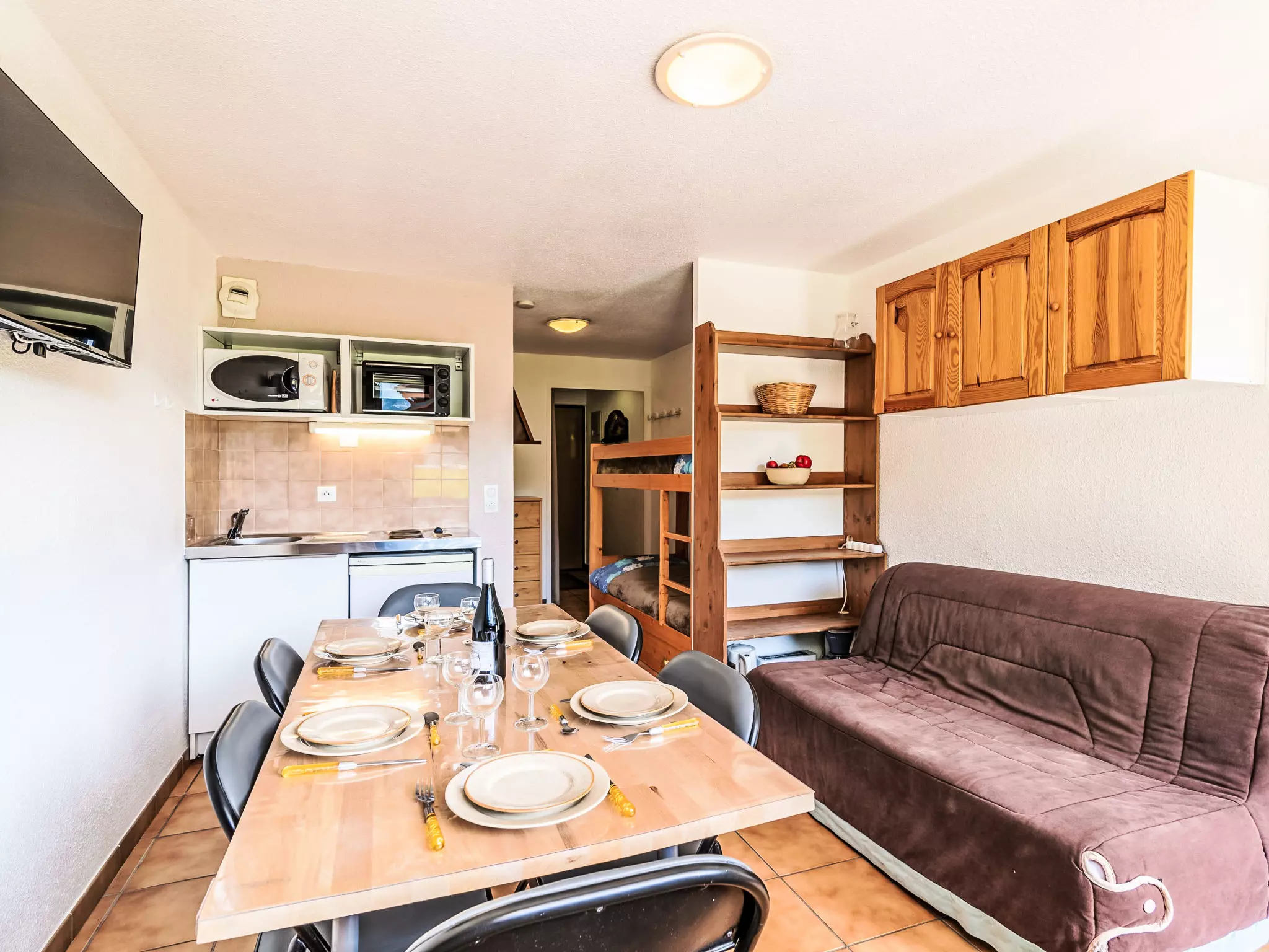 Tignes 1800-Boisses à 8 km de Tignes le Lac: Résidence "Les Olympiques (Tignes 1800)", de 2 étages. Dans la localité, situation tranquille, à 200 m du domaine skiable. Parking public. Magasins, magasin d'alimentation, supermarché 200 m, restaurant 100 m, boulangerie, arrêt de bus 200 m. Tennis 200 m, remontées mécaniques 200 m. Arrêt du ski-bus 100 m, école de ski. Veuillez noter: ski-bus gratuit. La remise des clés a lieu à l'agence Interhome de Tignes le Lac, 8 km. D'autres appartements sont également proposés à la location dans cette maison de vacances. Toutes les maisons/appartements sont aménagés individuellement.