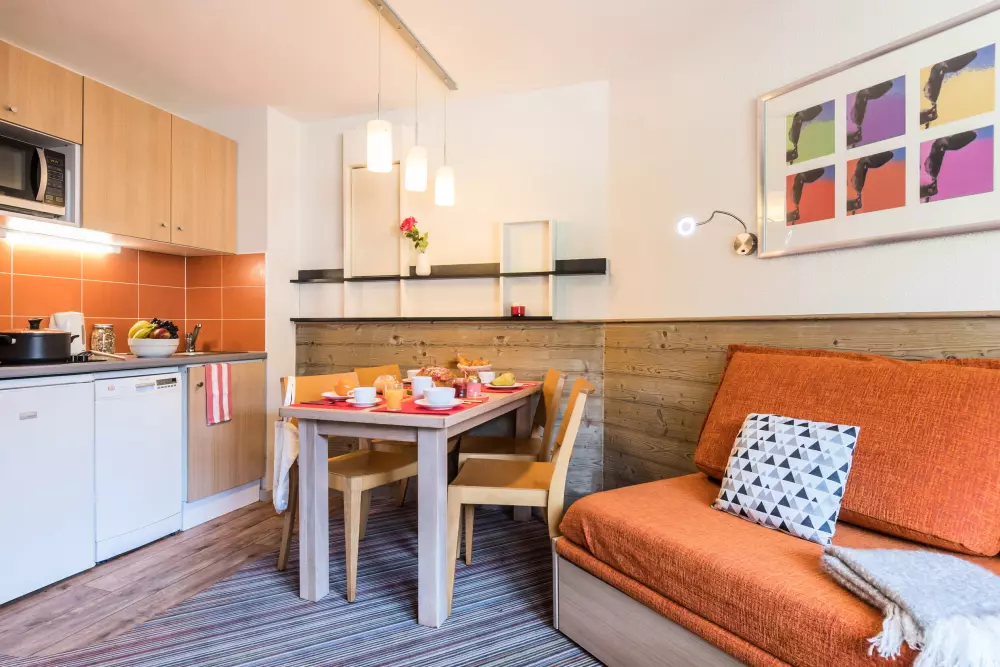 Après une belle journée sur vos skis, vous aurez le plaisir de retrouver le calme et le confort de votre appartement. Le petit plus ? Située à 5 minutes du téléphérique, la résidence vous propose un départ skis aux pieds.