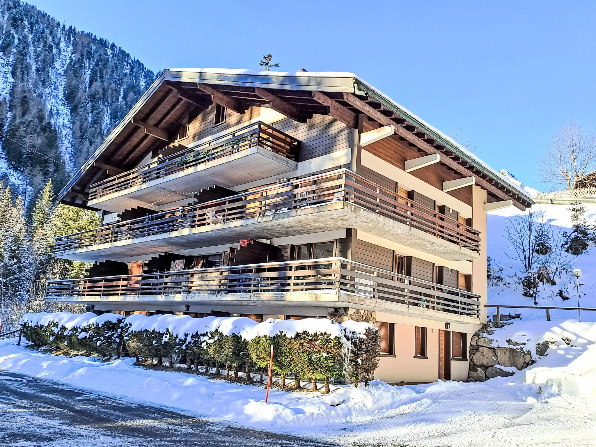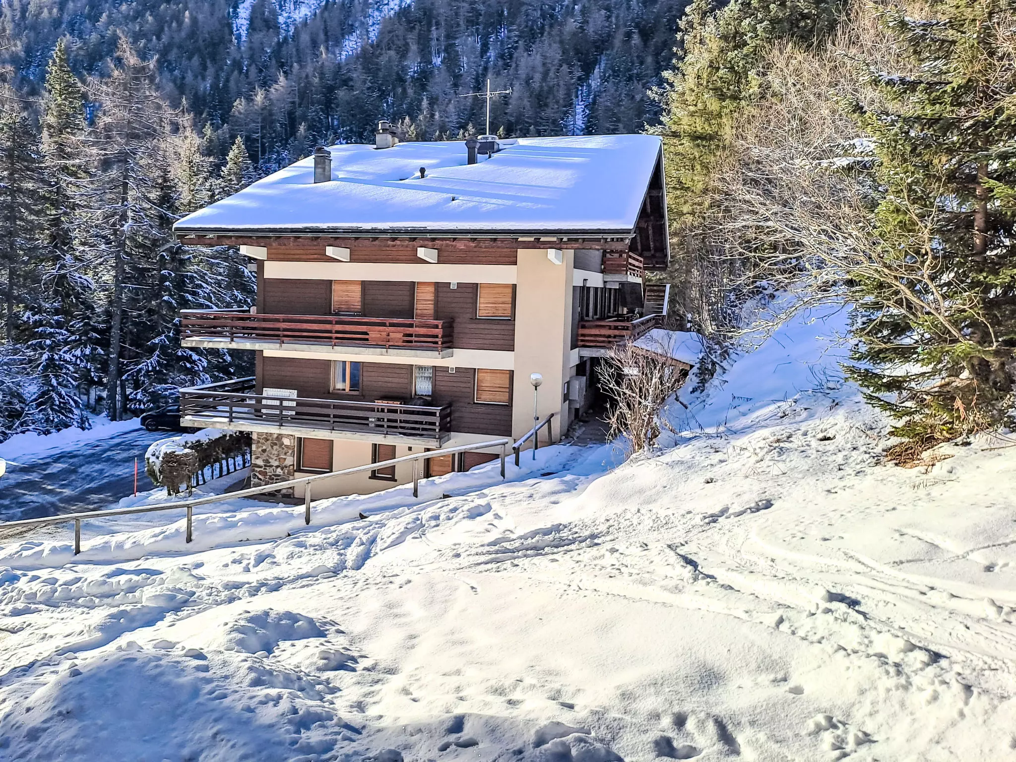 Immeuble "Arola", environné par les arbres. Dans la localité, à 700 m du centre, situation tranquille, à 50 m de la forêt, à 500 m du lac. Accès en voiture jusqu'à la maison. En hiver, merci de prévoir des chaînes. Place de parking près de la maison. Magasins 700 m, restaurant, boulangerie 300 m, arrêt de bus "Champex, Lac" 130 m, piscine 2 km. Tennis 500 m, pistes de ski 100 m. École de ski, jardin d'enfants (hiver) 500 m, piste de luge 100 m, patinoire 1 km, jeux pour enfants 800 m. Veuillez noter: possibilité de pêche (autorisation nécessaire).