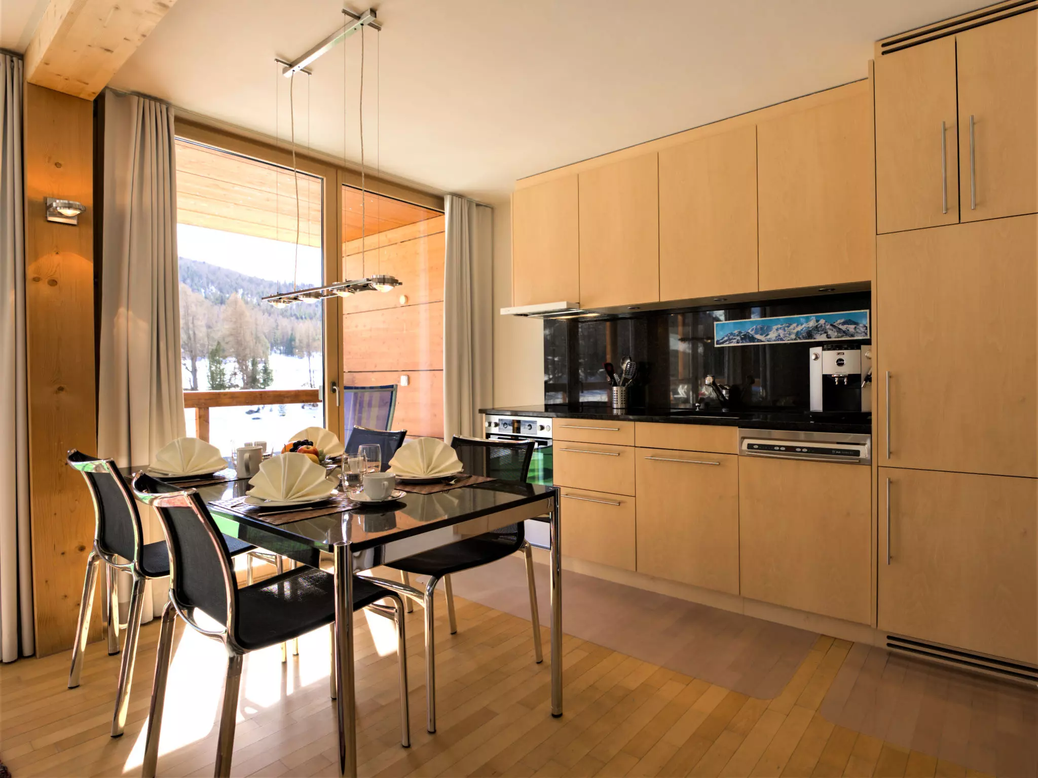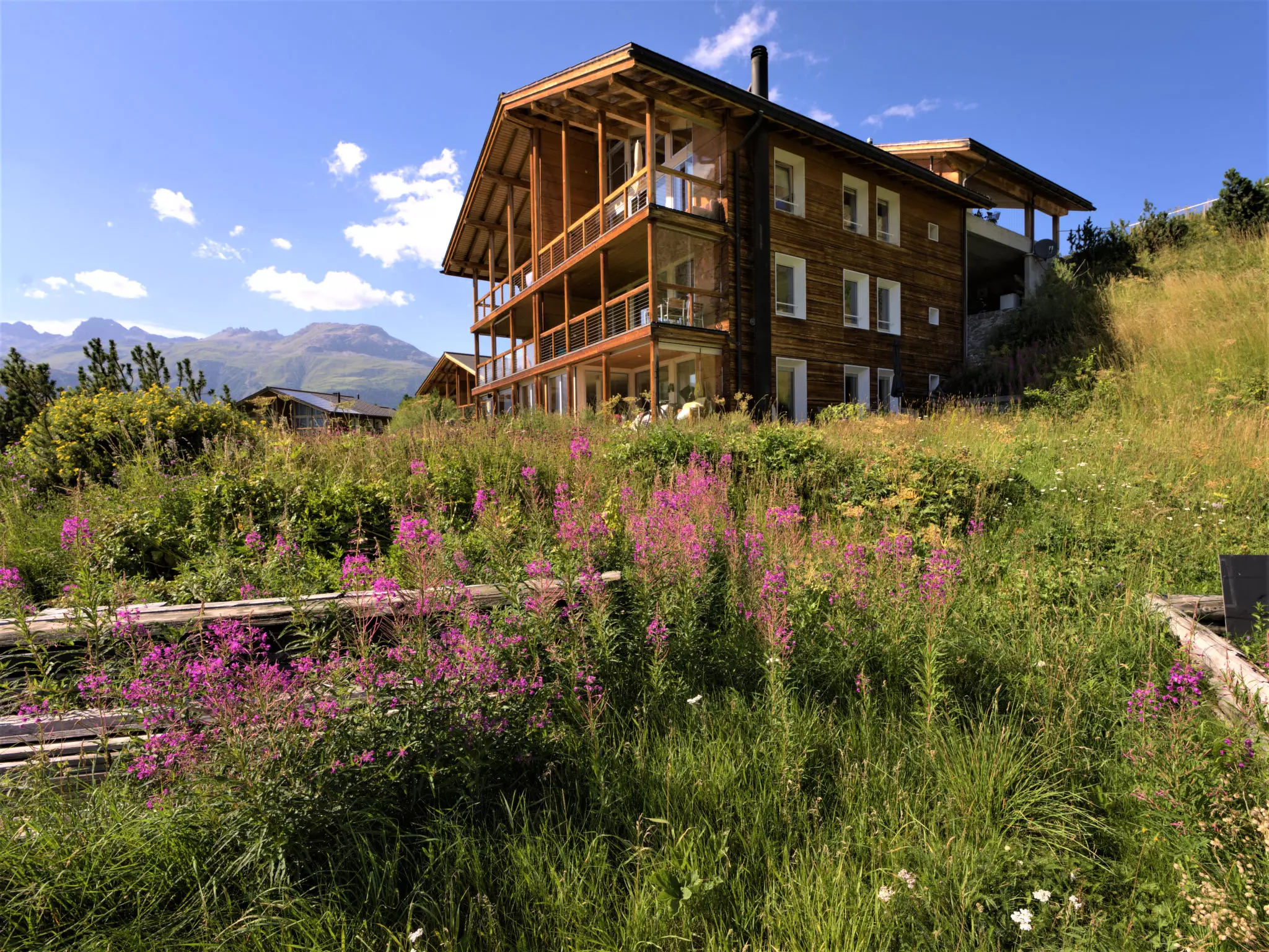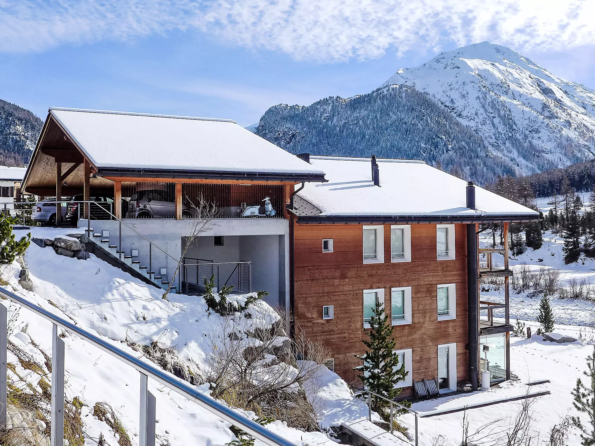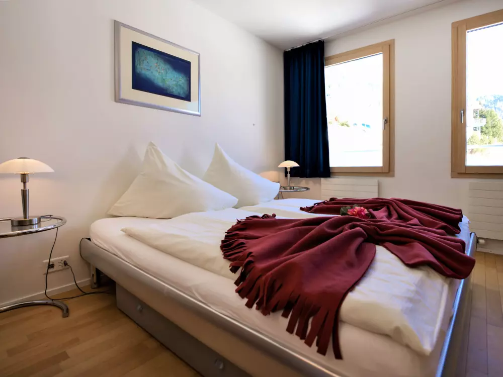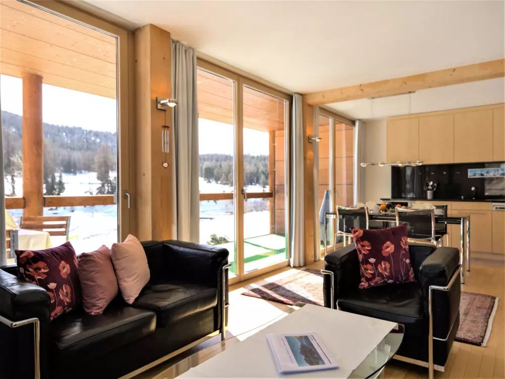 Chesa Lej à 7 km de St. Moritz: Maison en bois moderne "Chesa Lej", année de construction 2002. Dans le quartier de Muragls, situation tranquille, ensoleillée sur un versant, à 6 km du lac, à 20 m de la rivière. Infrastructures de la Maison: chauffage central, lave-linge, sèche-linge. Accès en voiture jusqu'à la maison. Place de parking No M2. Magasins 1 km, supermarché 1.8 km, restaurant 1 km, boulangerie 1 km, café 1.8 km, location de bicyclettes 2.1 km, arrêt de bus "Pontresina, Godin" 650 m, gare ferroviaire 2.5 km, piscine couverte 2.1 km, lac St. Moritzer See 6 km. Terrain de golf (18 trous) 4.3 km, ecole de surf 12 km, tennis 1.1 km, tennis couvert 7.4 km, golf miniature 7.2 km, centre équestre 2.7 km, chemins de randonnées pédestres depuis la maison 500 m, piste cyclable 1 km, téléphérique 4.4 km, téléski 2 km, location de ski 2.1 km. École de ski 1.8 km, école de ski d'enfants 1.8 km, piste de luge 1.3 km, ski de fond 500 m, patinoire 1.1 km, jeux pour enfants 1.1 km. Attractions à proximité: Museum Alpin 1.9 km, Kirche St. Maria 2.6 km, Alp-Schaukäserei Morteratsch (Sommer) 8 km, Segantini Museum in St. Moritz 7.3 km, Bernina Express UNESCO Welterbe. Les domaines skiables de renommée sont facilement accessibles: Corviglia Piz Nair 4.4 km, Diavolezza - Lagalb 14 km, Corvatsch - Furtschellas 13 km. Les lacs connus sont facilement accessibles: St. Moritzer See 6 km, Silvaplaner See 11.6 km, Silser See 15.5 km. Région de randonnées: Stazerwald & Stazersee, Muottas Muragl, Val Roseg & Val Morteratsch. Veuillez noter: sans ascenseur. Déchargement et chargement des bagages à la location de vacances.