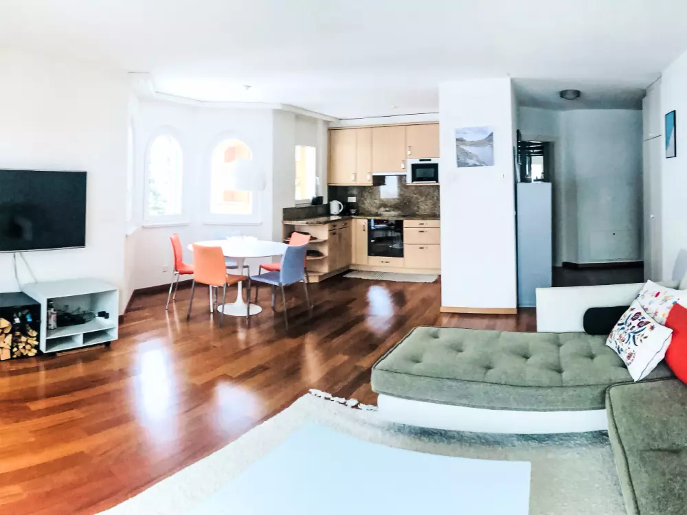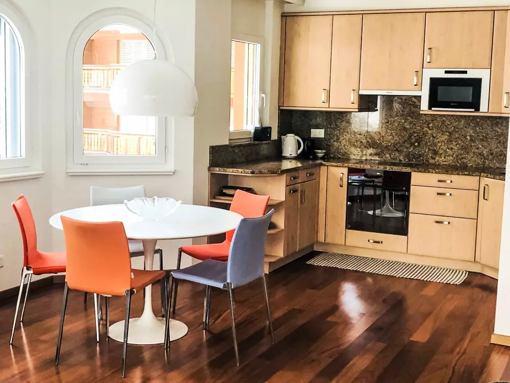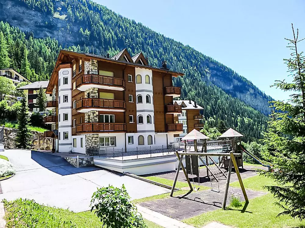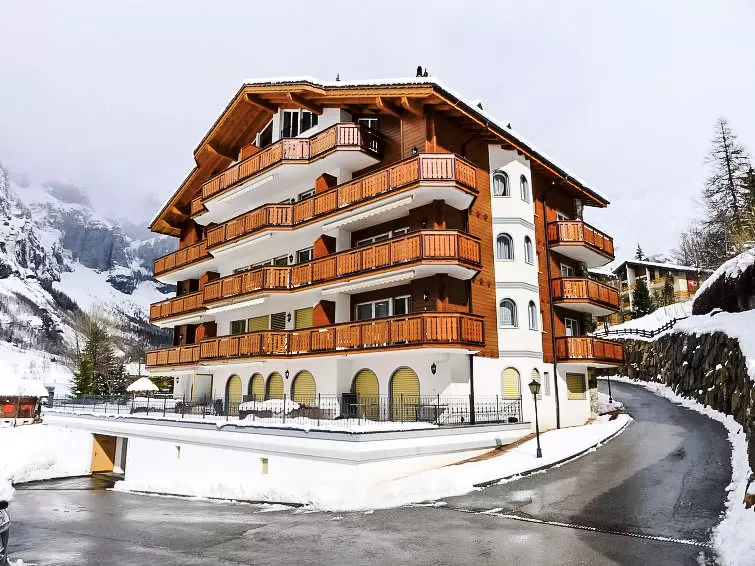 Belle petite résidence confortable "Edelweiss B", 1'350 m au dessus du niveau de la mer. En bordure de la localité, à 450 m du centre, situation tranquille, ensoleillée, à 250 m du domaine skiable. En commun: espace de jeux pour les enfants. Infrastructures de la Maison: ascenseur, local pour les skis, chauffage central, lave-linge, sèche-linge (en commun, en sus). Service boulangerie. Accès en voiture jusqu'à la maison (route de montagne). Garage en commun près de la maison. Magasins, magasin d'alimentation, restaurant 250 m, arrêt de bus "Leukerbad, Bristol" 200 m, centre thermal 350 m. Tennis, téléphérique, remontées mécaniques 250 m. La carte Leukerbad Plus est incluse dans le prix: utilisation gratuite du bus local de Ringjet, accès gratuit au domaine skiable pour enfants d‘Erli, utilisation gratuite du centre sportif et réduction sur les forfaits ski et piscine.