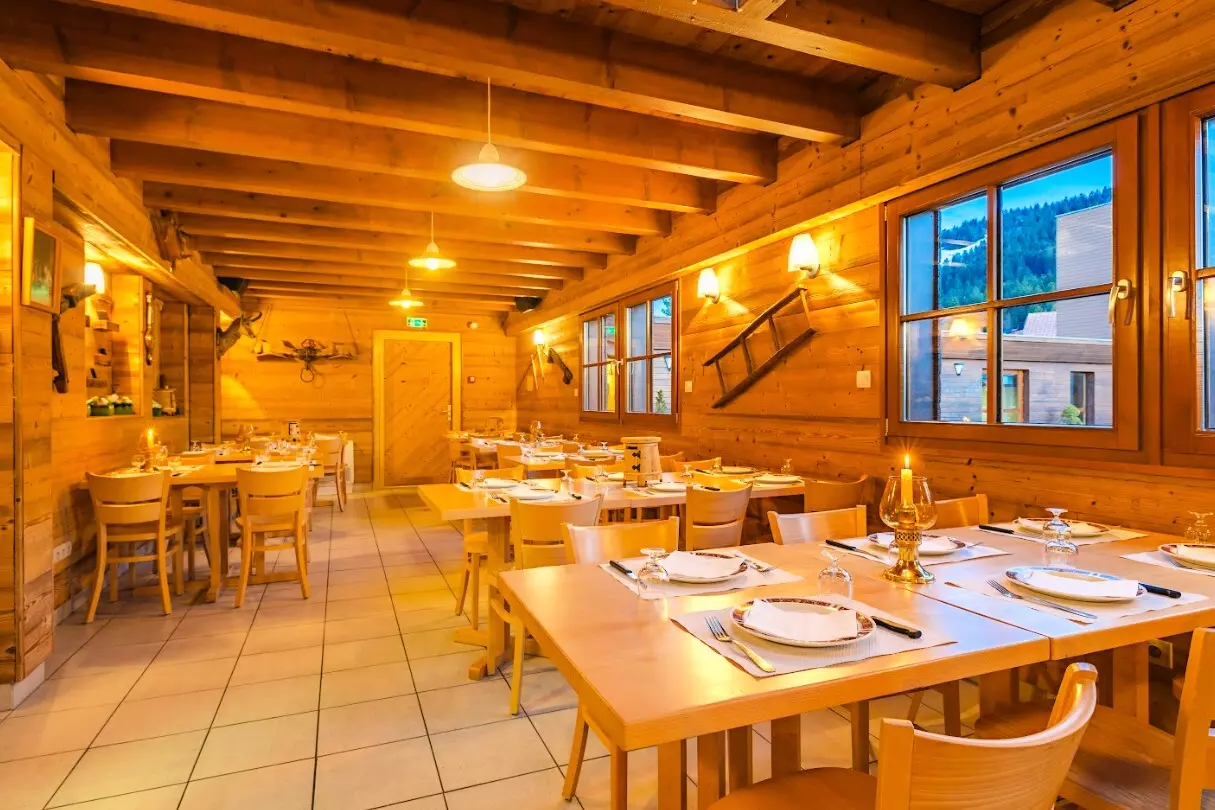 Vous apprécierez la grande cheminée centrale du restaurant qui donne une ambiance montagnarde parfaite à vos repas. Pour vos apéritifs, un bar vous est proposé.